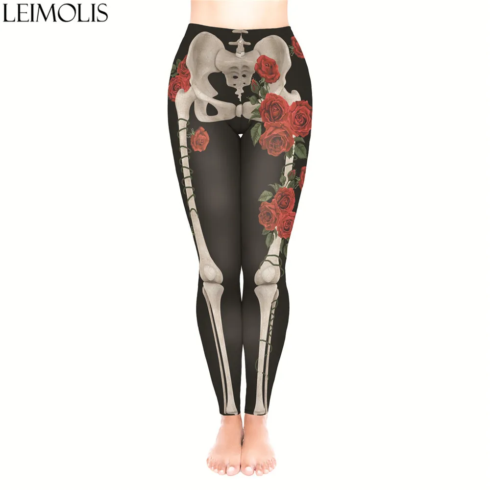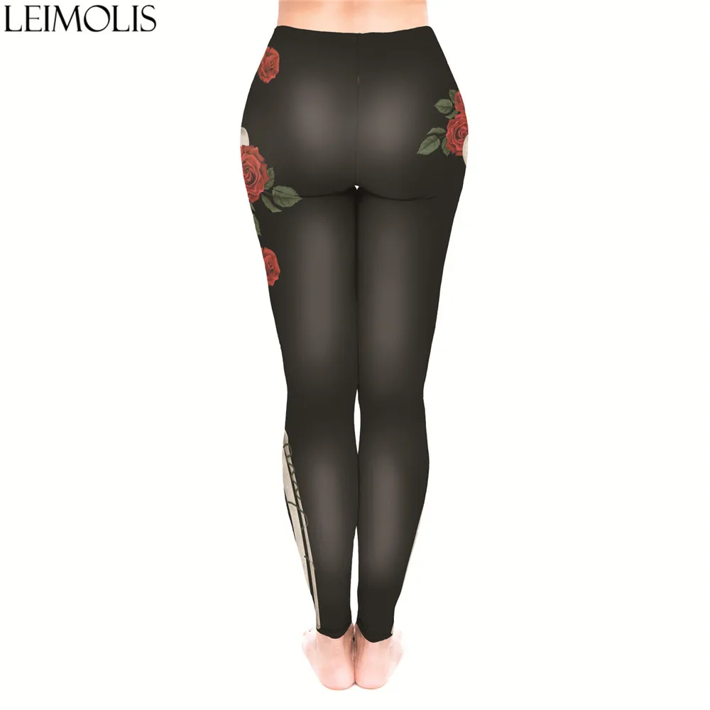 Sale LEIMOLIS 3D print Gothic rose skeleton black fitness push up workout leggings women plus size High Waist punk rock sexy leggins