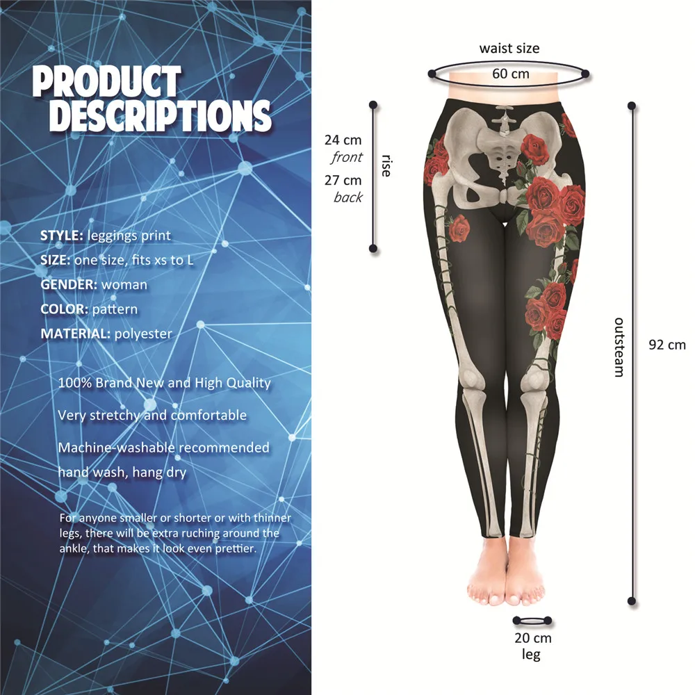 Images of LEIMOLIS 3D print Gothic rose skeleton black fitness push up workout leggings women plus size High Waist punk rock sexy leggins :