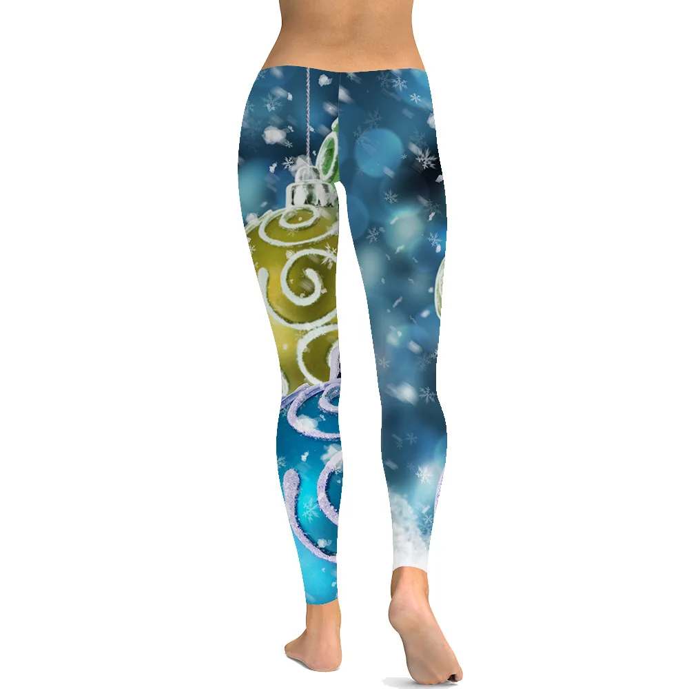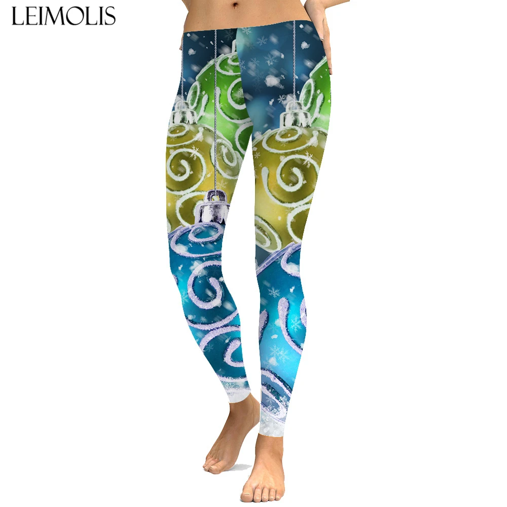 New LEIMOLIS Christmas ball blue print push up leggings plus size women fitness workout punk high waist spandex leggins