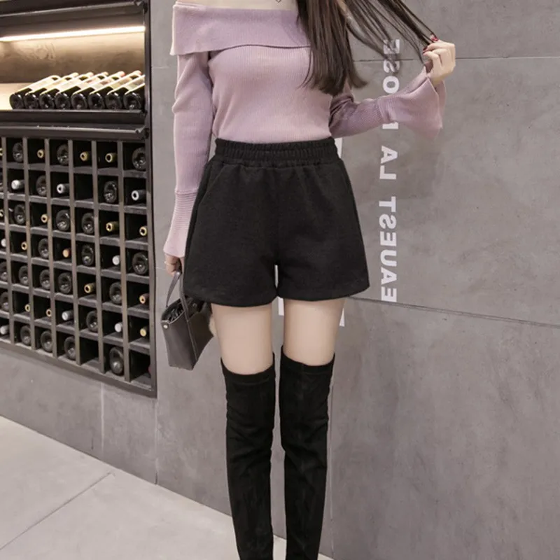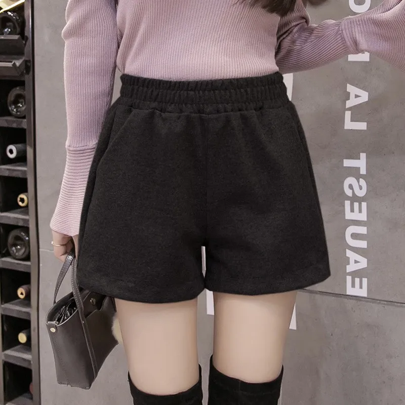 Best Offer 2018 Autumn Winter Classic Basic Casual Wide Leg Shorts Korean Fashion Shorts for Women Femme Loose Warm Shorts Plus Size