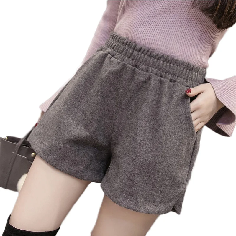 Images of 2018 Autumn Winter Classic Basic Casual Wide Leg Shorts Korean Fashion Shorts for Women Femme Loose Warm Shorts Plus Size :