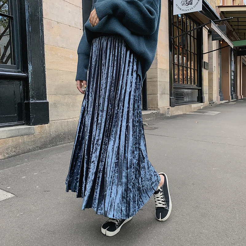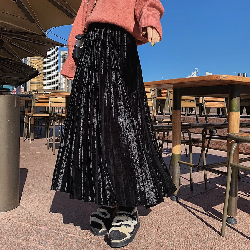 Buy 5 Colors Pleated Long Skirts for Women with Liner Korean Fashion Skirts 2020 Causal Black Skirt White Maxi Skirts