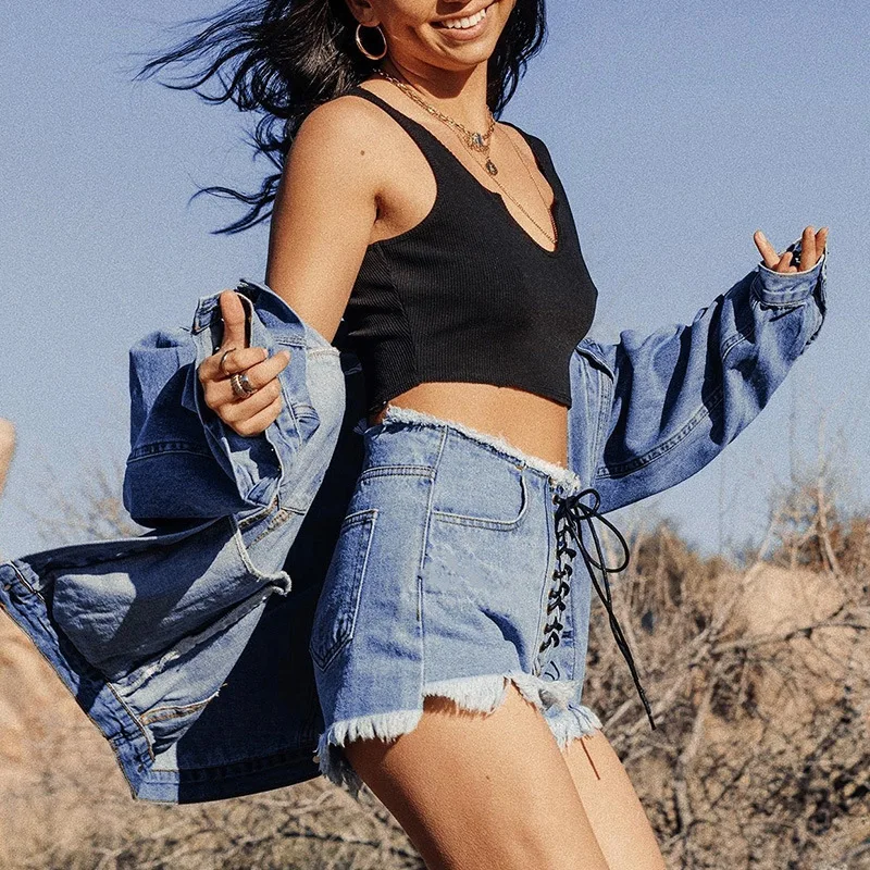 Sale Sexy Summer Women Denim Shorts High Waist Mini Hot Short Jeans Femme Tassel Lace Up Bandage Hotpants Harajuku Streetwear Shorts