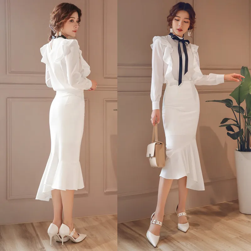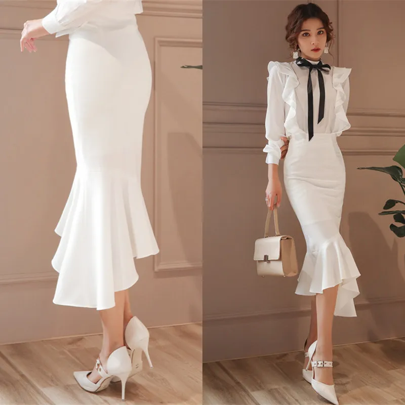 Images of Free Shipping 2019 New Fashion Long Mid-calf Skirt For Women Plus Size XS-3XL Mermaid Style Stretch Ladies Black And White Skirt :